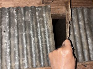 昨日、追い出して塞いだのですが、夜間に他の箇所のトタン板をめくって再侵入😅