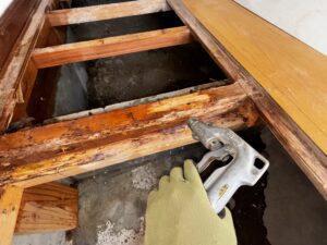 前回、シロアリ防蟻処理をしたときに大工さんが床を張り替えたのだが、その床がシロアリに喰われてしまい