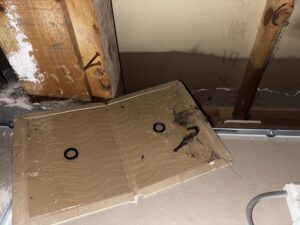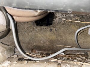 確認できなかったので、まぁ侵入できる可能性がある箇所は塞いで、あとは出られなくなれば捕獲も容易いのでトラップを設置して捕獲