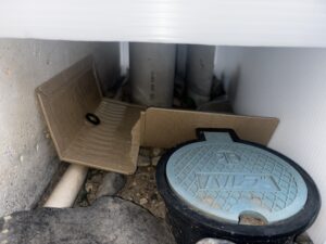 あとはパイプシャフトの下部が開口していたので鳥さんなどが掛からないようにプラダンで囲いまして